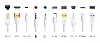 - ขั้วต่อ USB 1.x มีรูปทรงสี่เหลี่ยมผืนผ้าที่มีขั้วต่อ Type-A แบบแบนที่ปลายด้านหนึ่ง และขั้วต่อ Type-B หรือ Mini-B แบบสี่เหลี่ยมที่ปลายอีกด้านหนึ่ง