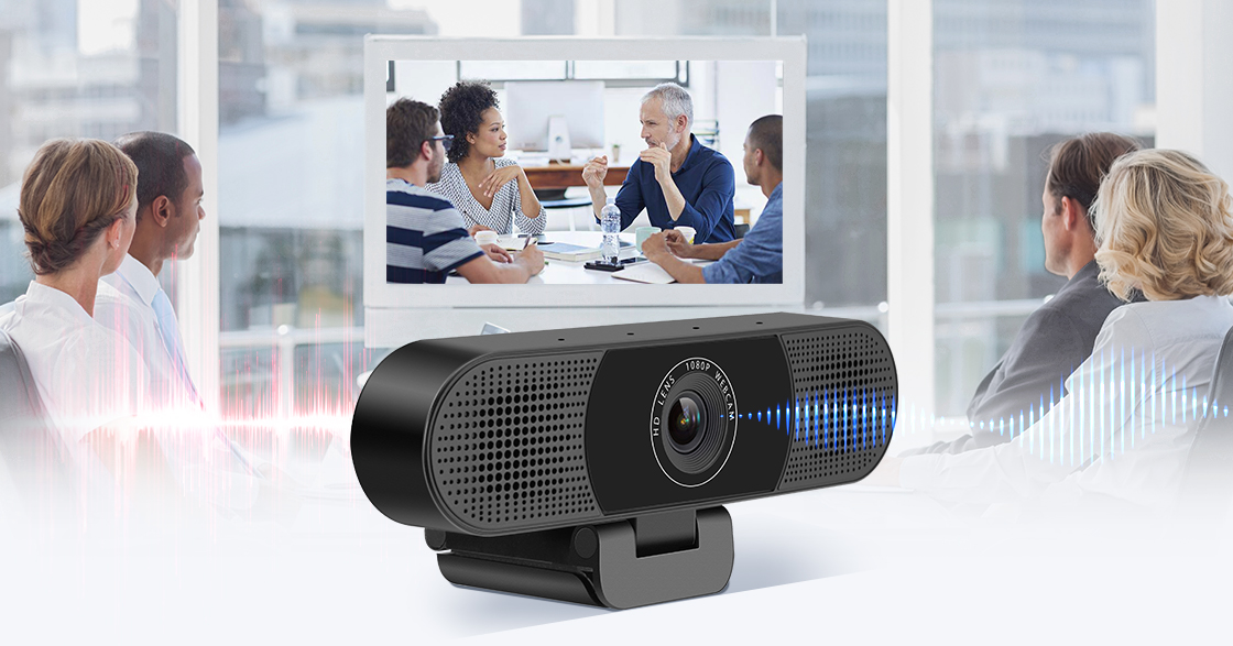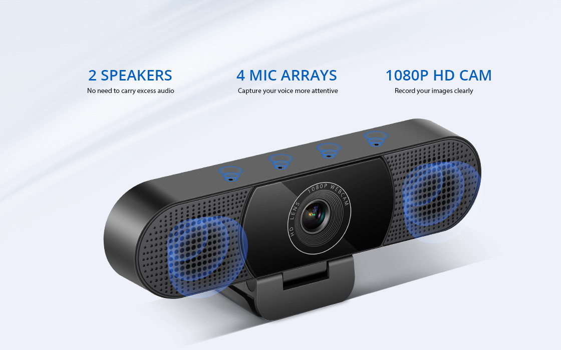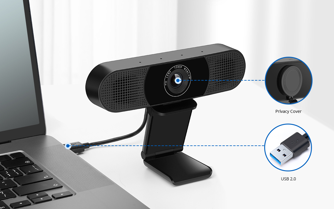 Full HD 1080p Webcam for Video Calling and Conference, with 4 Microphones & 2 Speakers, USB Plug and Play. Ideal for remoting conference, home office and online learning.